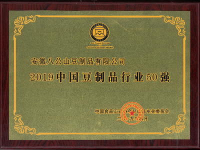 近年來,公司以“保護豆腐遺產,傳承豆腐技藝,弘揚豆腐文化”為理念,大力發展豆制品產業,企業通過ISO9001質量管理體系認證,被評為“全國豆制品行業50強企業”、“全國主食加工示范企業”、“中國豆制品行業質量安全示范單位”、“全國工業旅游示范點”、安徽省“農業產業化龍頭企業”。系列產品被授予“安徽名牌產品”、“安徽省知名旅游商品”稱號,“八公山泉”牌商標被評為安徽省“著名商標”。八公山豆腐被授予國家地理標志保護產品,其傳統制作技藝入選第四批國家級非物質文化遺產代表性項目名錄,我公司被文化部批準為該項目保護單位。